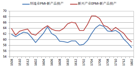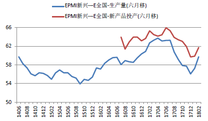 图2:新兴产业EPMI生产量和新产品投产6月均走势