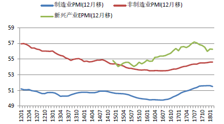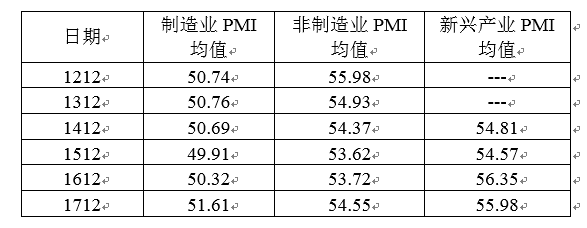 表1:新兴产业PMI明显高于传统制造业和非制造业PMI