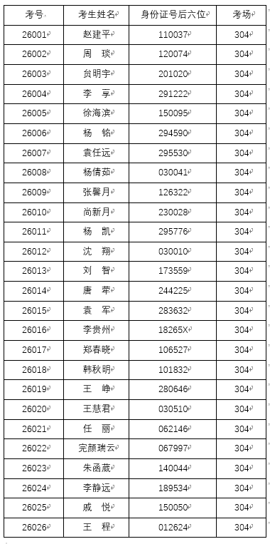 考场1 304会议室(办公楼三层)