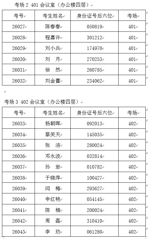 考场2 401会议室(办公楼四层)