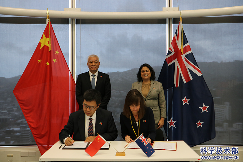 在王志刚部长和弗拉尔部长见证下,科技部国际合作司司长戴钢与新西兰商业创新与就业部科学创新和国际司司长罗宾·亨德森(Robyn Henderson)共同签署了第六届中新科技合作联委会纪要。